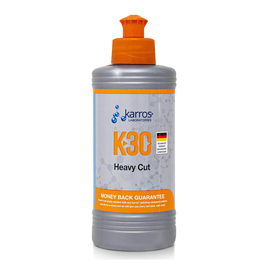 KARROS K30, tek uygulama aşamasıyla ağır çizik ve oksidasyon giderme, hologramsız parlak bir yüzey oluşturma, etkili çizik alma ve kolay temizlenebilme yeteneği ile su bazlı ürün gamı içerisinde ekonomisiyle güçlü bir üründür. Kaporta boya, mobilya sektörü, tekne marina grubu gibi birçok alanda güvenle kullanılabilir.