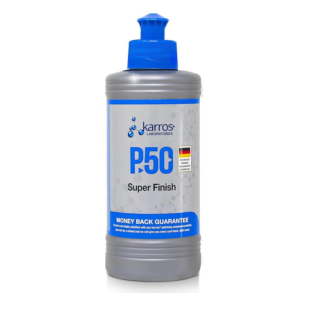 KARROS P50 Super Finish, çizilmeye dayanıklı yeni nesil boyalar için özel olarak geliştirilmiş, son teknoloji bir finisaj pastasıdır. İçeriğindeki mikro aşındırıcılar sayesinde, hem hafif çizik giderici bir pasta hem de ultra parlak bir cila işlevi görür. Taze, çizilmeye dayanıklı veya konvansiyonel şeffaf kat üzerindeki 3000 kum zımpara izleri, pus ve hologramları, maskeleme veya dolgu yapmadan kalıcı olarak ortadan kaldırır.
